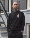 Gemaakt van 100% hoogwaardig katoen met een zware grammage van 350gsm, voelt deze sweater extra stevig, warm en premium aan. De relaxte pasvorm zorgt voor optimaal comfort, terwijl de diepe zwarte kleur en de subtiele borstprint een stoere en tijdloze uitstraling geven.