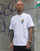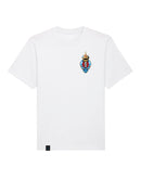 Gemaakt van 100% hoogwaardig katoen met een stevige grammage van 240gsm, voelt dit shirt premium en duurzaam aan. De relaxte pasvorm zorgt voor ultiem comfort, terwijl de frisse witte kleur en de subtiele borstprint het een moderne en veelzijdige uitstraling geven.
